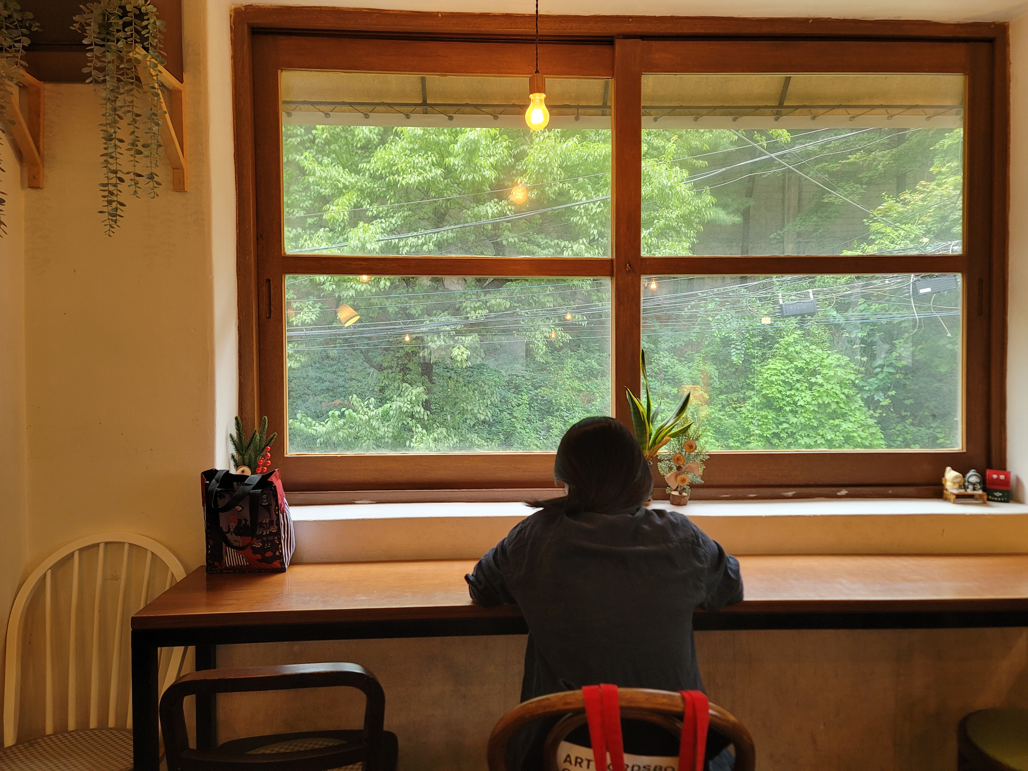 특히 창가 자리는 시야를 가리는 것 없이, 나무들로만 채워져있어 분위기가 완성되는 느낌이다.
