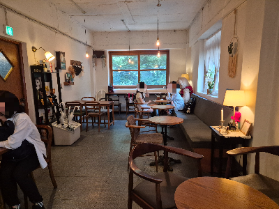 카페 내부는 따뜻하고 빈티지한 인테리어와 가구들로 채워져 있다.