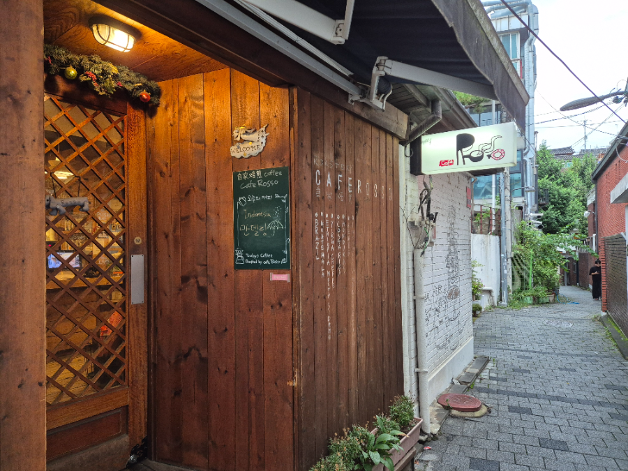 입구부터 나무 외관에 삼청동 감성이 느껴지고,